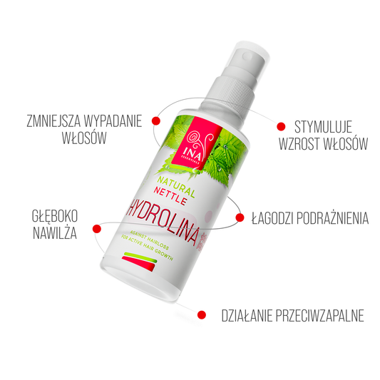 Woda z dzikiej Pokrzywy - Hydrolina - spray do włosów - na Wypadające i Przetłuszczające się włosy