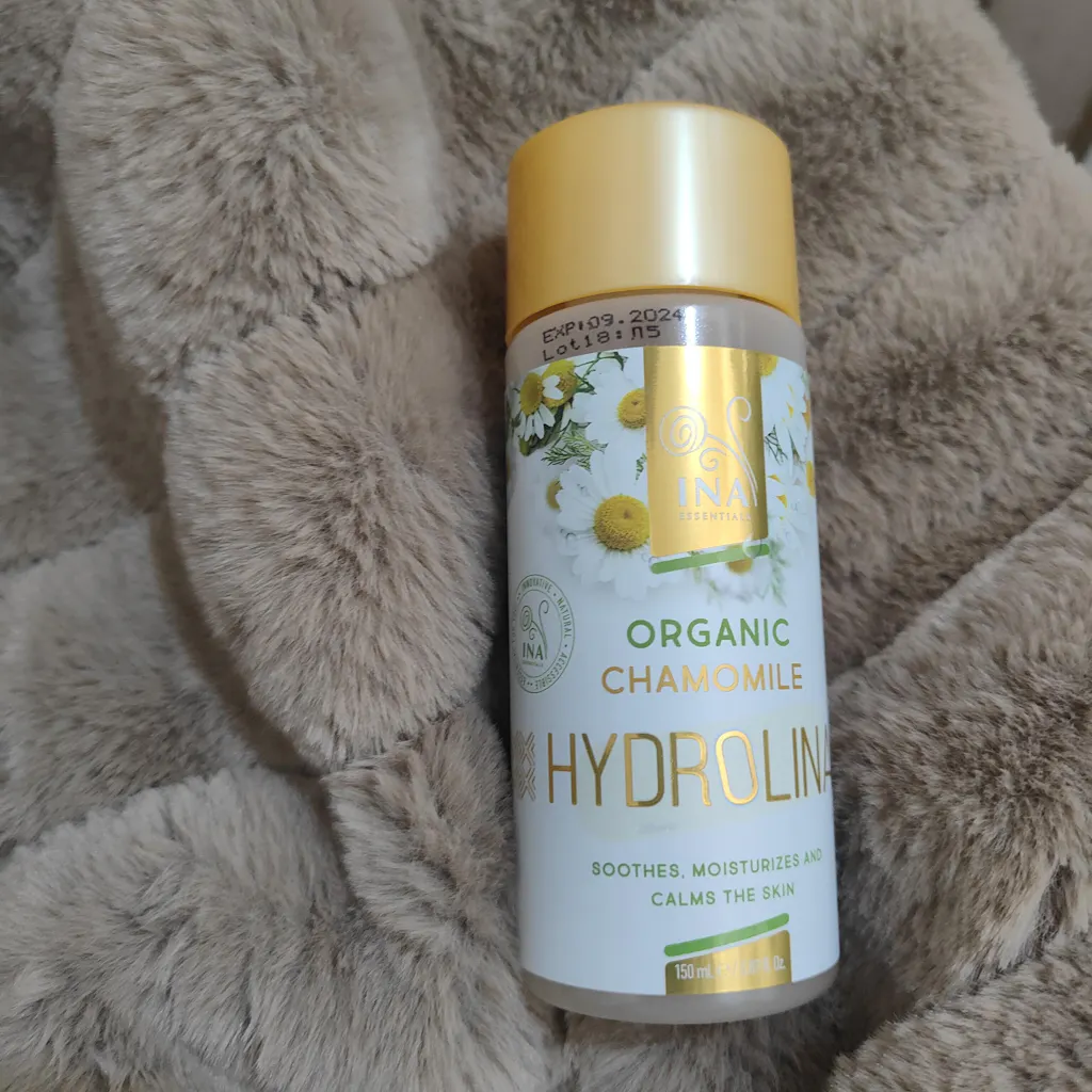 - Krok 2: Następnie zastosuj naszą w 100% organiczną wodę rumiankową - Hydrolina. Przeciwzapalne właściwości wody rumiankowej uspokajają skórę, zmniejszają zaczerwienienia i tworzą tarczę ochronną przed czynnikami drażniącymi w ciągu dnia, zapewniając skórze idealne środowisko do oddychania i rozwoju.