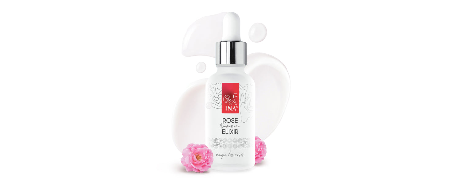 InaEssentials Rose Elixir to intensywne, wysokiej jakości serum przeciwstarzeniowe do twarzy, zawierające prawdziwy olejek różany oraz silnie działające składniki aktywne pochodzenia roślinnego. Jego lekka formuła zapewnia codzienną pielęgnację odmładzającą – głęboko nawilża, ujędrnia skórę i skutecznie zwalcza oznaki starzenia.