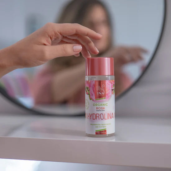 Aby uzyskać optymalne rezultaty, stosuj w połączeniu z Ekologiczną Wodą Różaną – Hydrolina oraz Crème de Rose od InaEssentials – aktywnym kremem nawilżającym z SPF 30, wzbogaconym o olejek z róży organicznej, dla intensywnego nawilżenia i regeneracji.