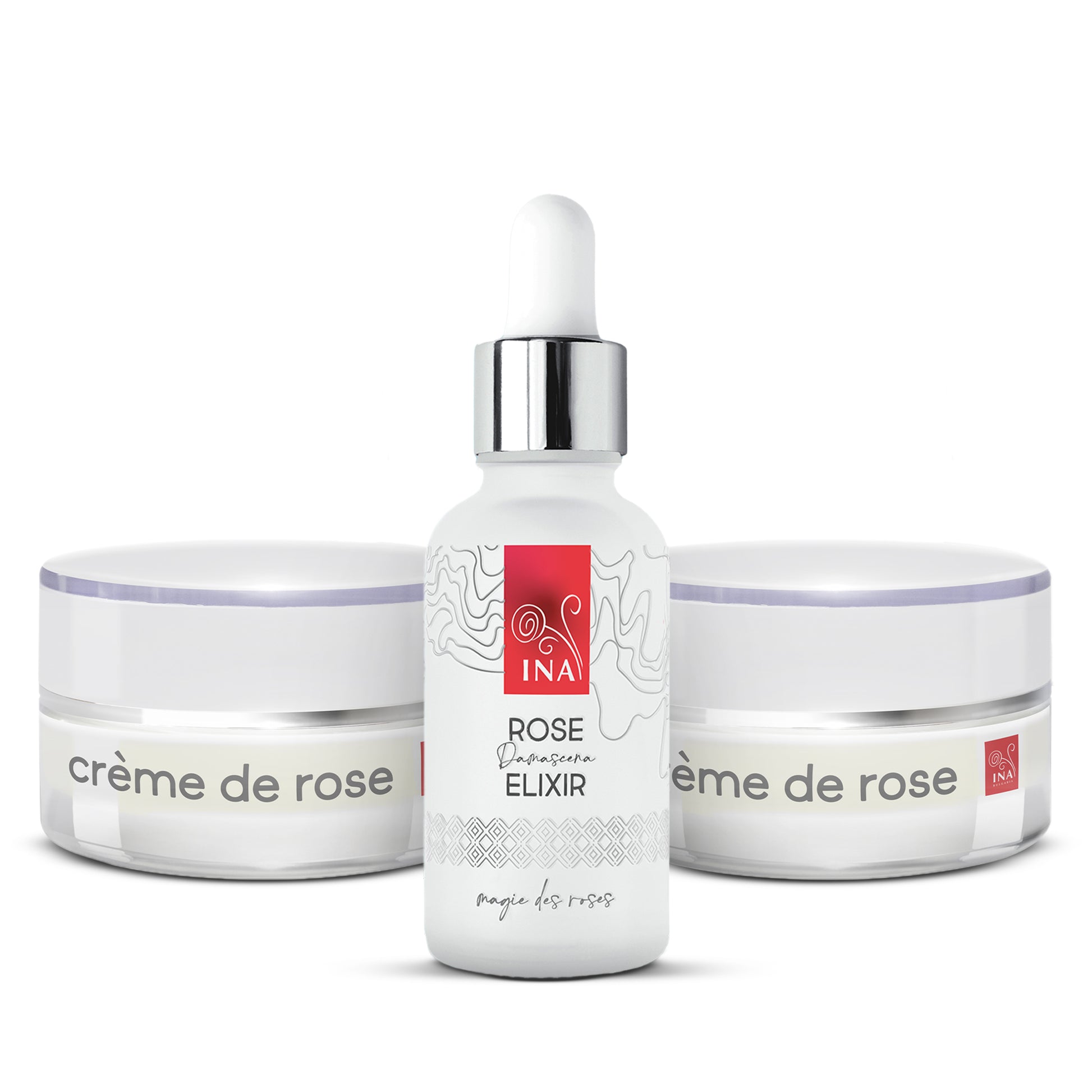 - Crème de Rose – aktywnym kremem nawilżającym z filtrem SPF 30, wzbogaconym organicznym olejkiem różanym, dla jeszcze lepszego nawilżenia i regeneracji.