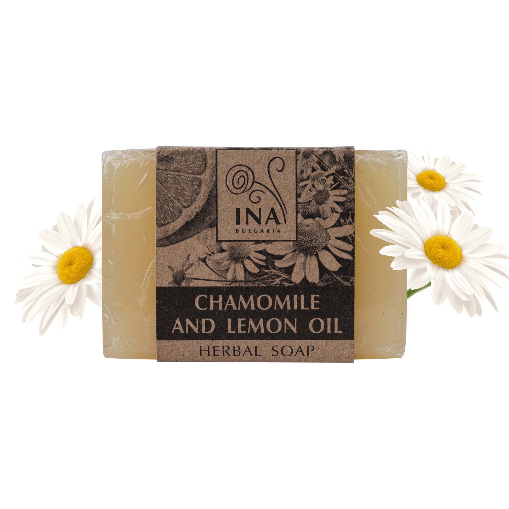 Świeży, słodki, zielny zapach mydła ziołowego Rumianek i Cytryna firmy InaEssential zabierze Cię na skąpane w słońcu złote pola rumianku w Bułgarii.
