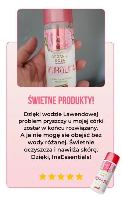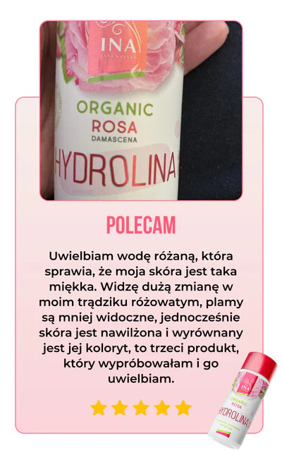 Hydrolina z Róży (150ml) to coś więcej niż tylko wspaniała butelka, to prawdziwe opinie klientów. Z imponującym wynikiem zadowolonych klientów, wynoszącym ponad 90%, nasz produkt wykazuje skuteczność w walce z suchą skórą i drobnymi liniami, jednocześnie poprawiając zdrowie skóry. Nie wierz nam na słowo, przeczytaj historie naszych klientów.