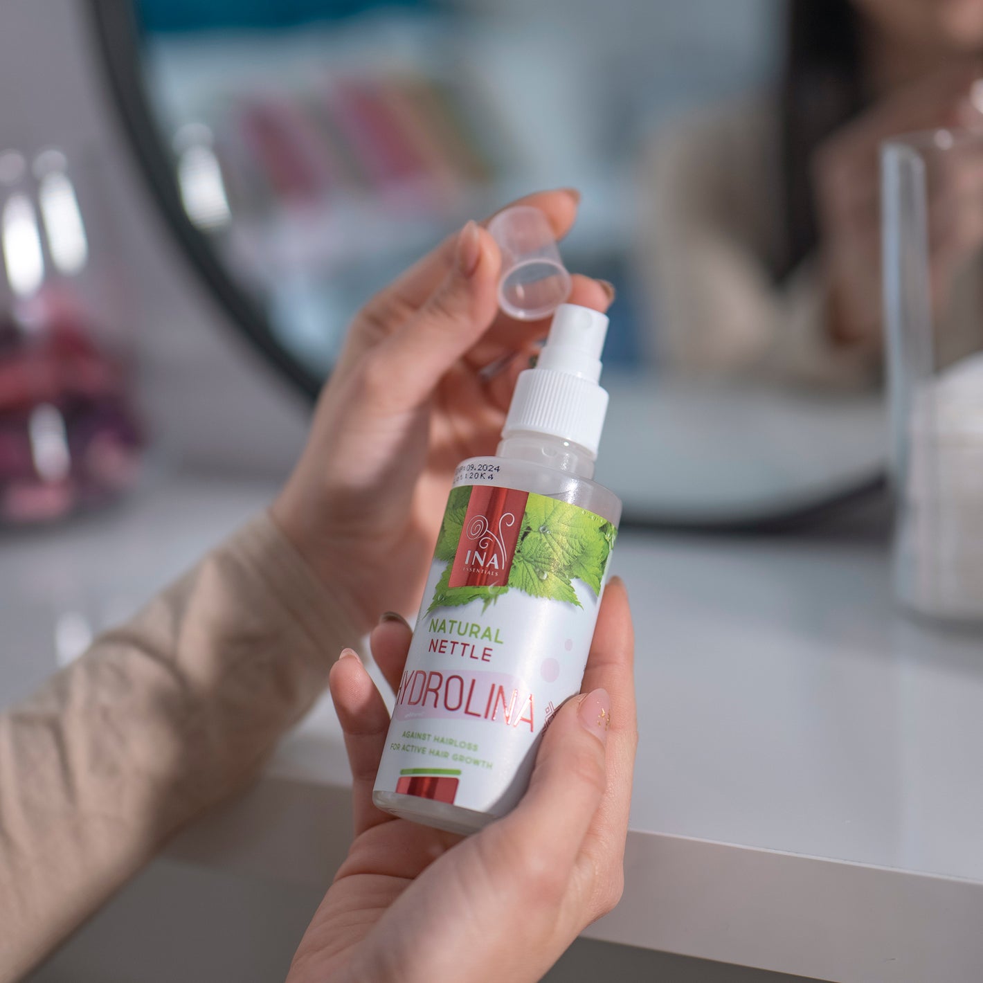 Pokrzywowa Hydrolina oferuje więcej niż chwilowe rozwiązanie. Działa u nasady, głęboko leczy mieszki włosowe, eliminuje wypadanie włosów, wspomaga soczyste i zdrowe włosy.